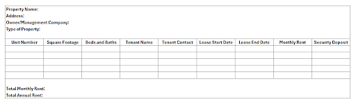 Property Information. This includes the name of the owner or management company, the property address, and the type of property.